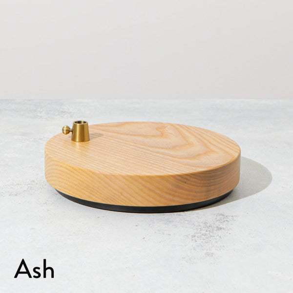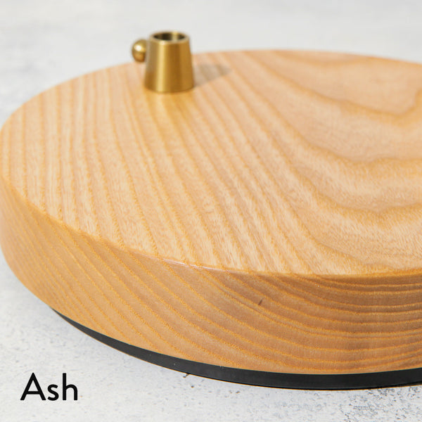 Weighted Wood base for CANVAS Lamp. Constructed of wood, steel, and metal accent.